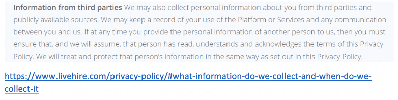 However, while this answer is a lot of fun to read, it doesn’t actually answer the question of how Livehire was able to make the ‘private connection’ to a potential employee, in the first place. In the image below, Daniela from Livehire once explained that a profile is only created once an employee accepts an invitation to join a talent community. But the question remains; how did Livehire get the details of that person which were required to invite them to the talent community in the first place?
