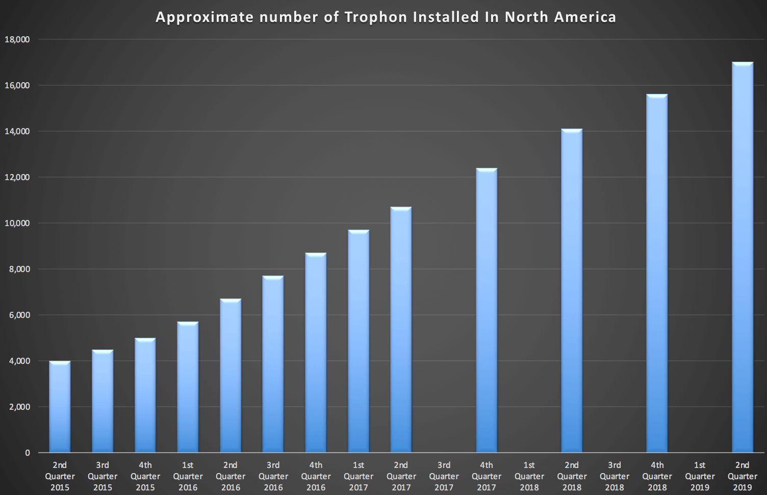 Further, although the installed base is still expanding strongly, the pace of growth continues to slow. At the end of FY2018, the annual growth in the Trophon fleet was 25%, or 11% over the preceding 6 months. That compares to 20% and 9%, respectively, for the latest half.