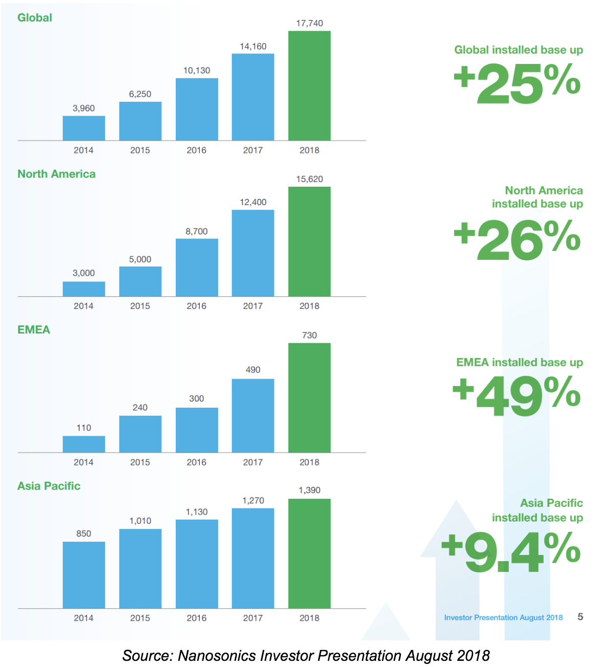 What’s core to the bull case on Nanosonics is that the installed base of Trophon devices continues to grow at a sufficient rate. Each machine creates a very high margin recurring revenue stream (I estimate at least 75%) -- one that can be expected to last around five to seven years, with a high rate of retention at the end of the period.
